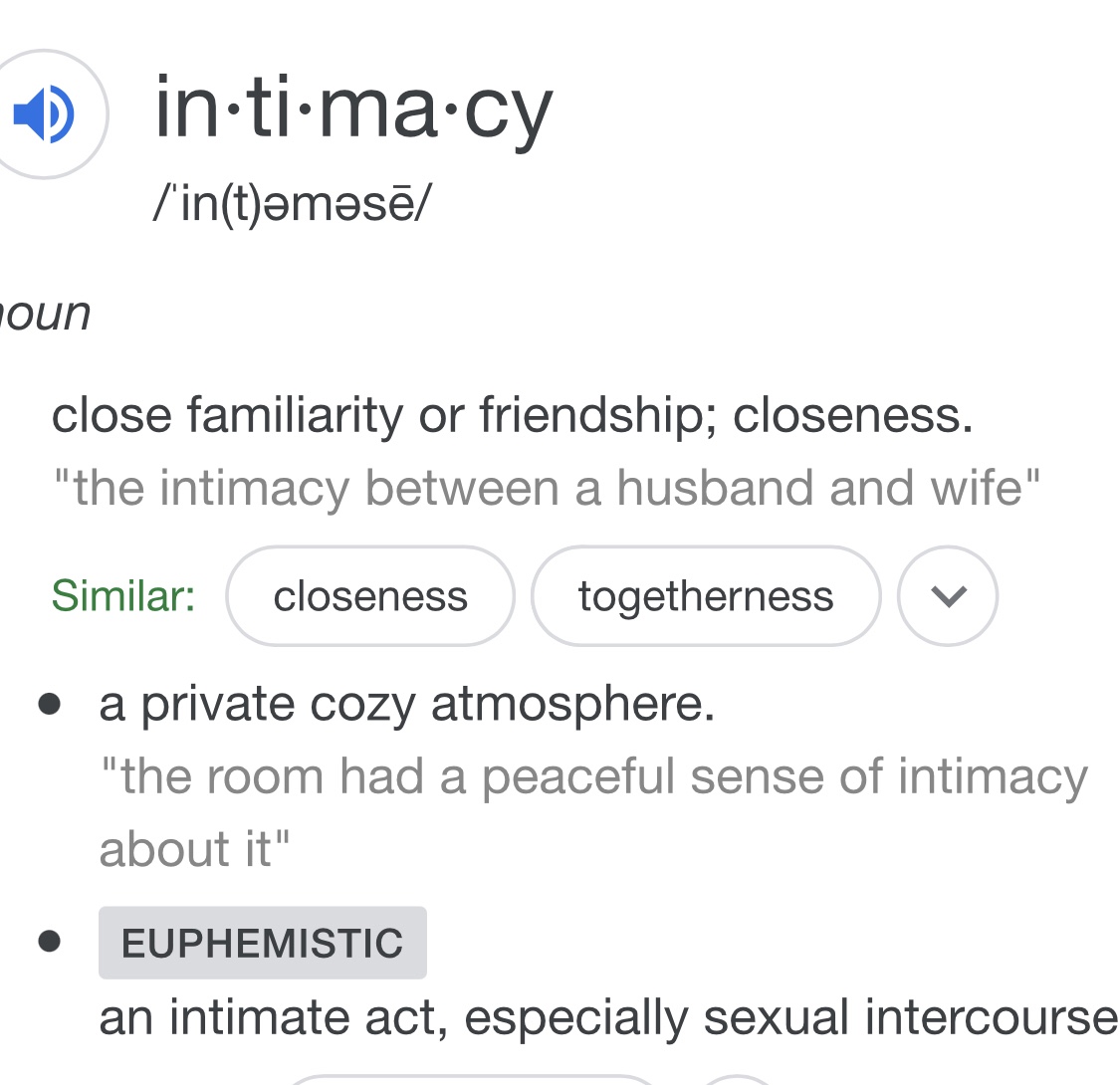 Intimacy can be of a sexual form, but does not always have to. The key word is the closeness. We all share some form of closeness with one another. We can be intimate on a friendship level, family level, work level, spiritual level, etc. Technically, and you’ll find a link on Kwoted, there are four types of intimacy; emotional, mental, spiritual, and physical.