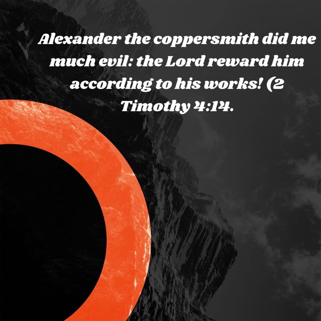 Whatever Alexander the coppersmith did, it is noteworthy that Paul did not seek a personal revenge; nor did he request his spiritual son to handle the issue on his behalf. But instead, he wisely turned the matter over to God for justice. (see Proverbs 20:22, Hebrews 10:30).