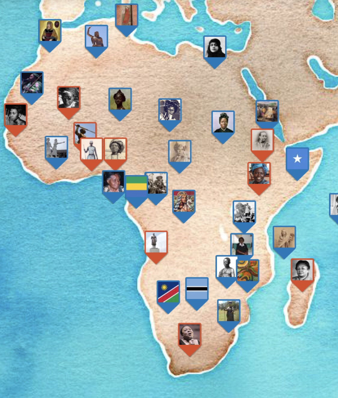 In my research, I found a UNESCO (United Nations Educational, Scientific and Cultural Organization) interactive map of Women in African History. I love the interactives; I hope you do too. Unfortunately, this interactive lists only 32 women; one woman per country highlighted. There were 23 countries that did not have any woman highlighted. Click on the link above for the interactive map and on the picture to view details of the woman.