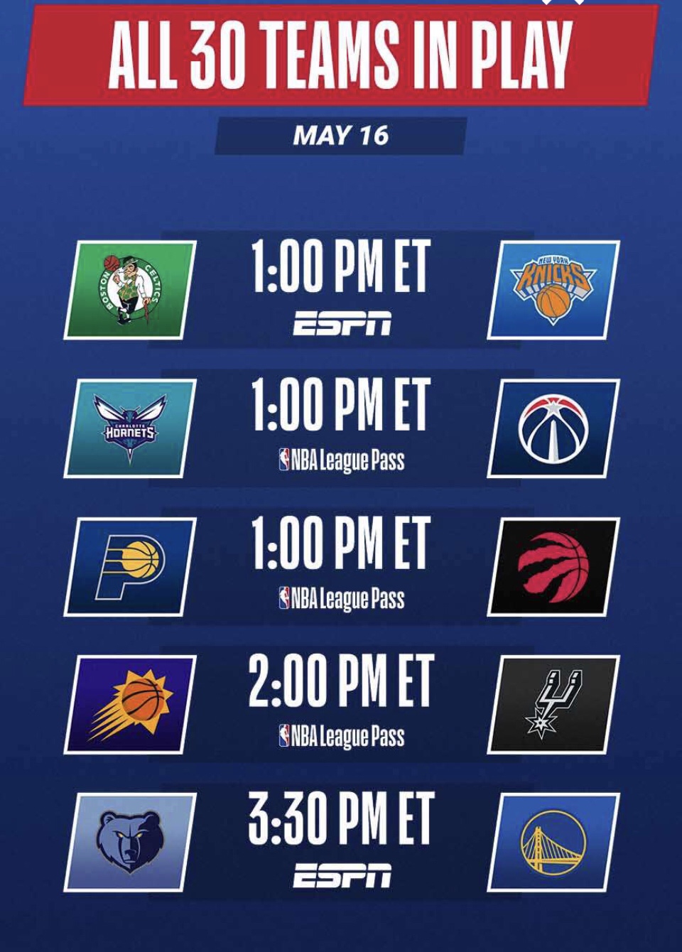 It’s a day of basketball starting now. All 30 Teams playing today – 15 games!!! It’s Pre-Play-In which starts on Tuesday. Some teams (6 from the Eastern Conference and 5 from the Western) have clinched a Playoff seed, but a few teams need to win the game today and the Play-In to qualify for Playoff.