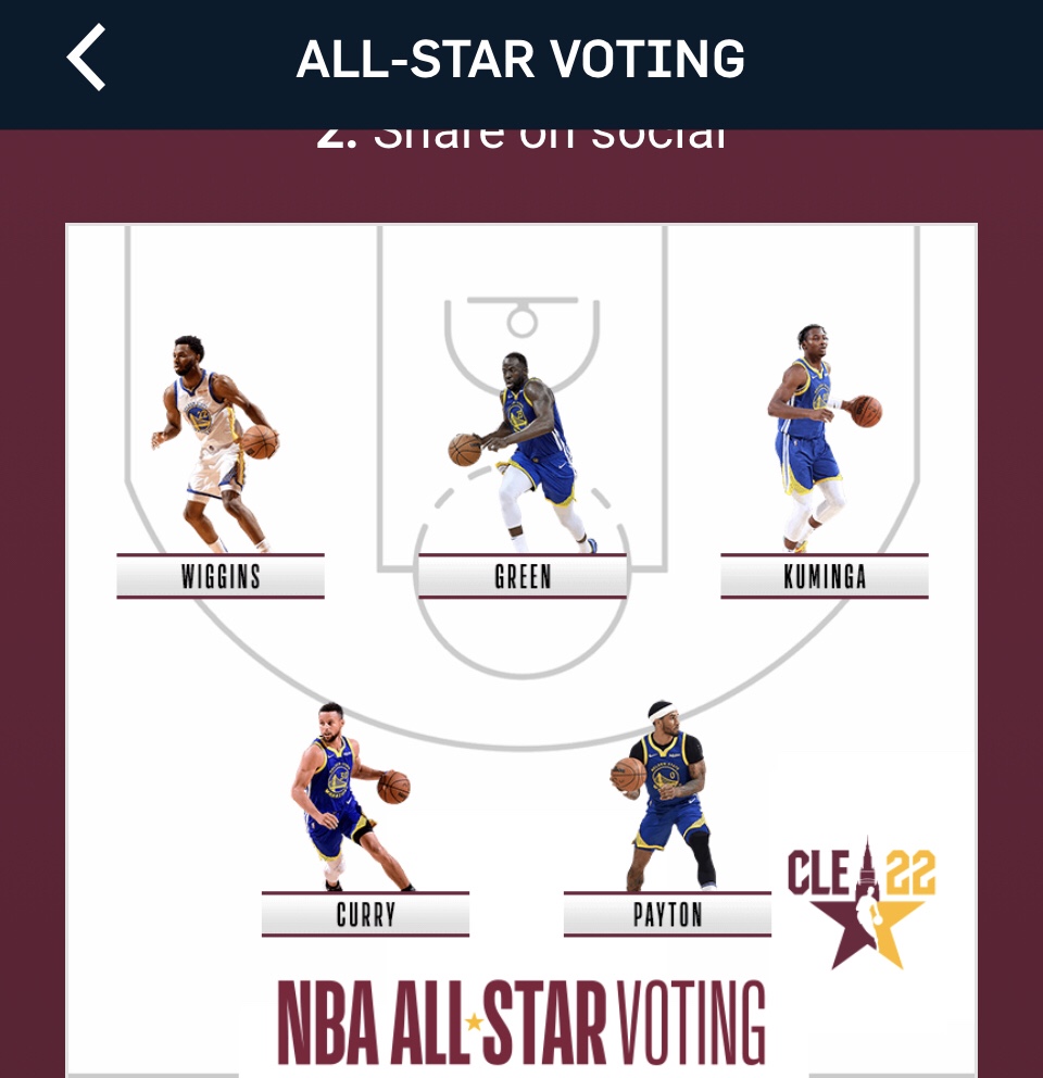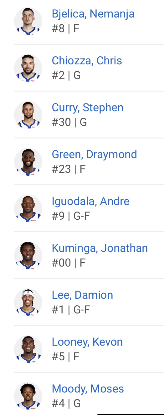 Below is the GSW Team list, in alphabetical order, just in case you don’t know all the players. You can only vote for two guards (G) and three forwards (F) per day. I suggest alternating (selecting different) players each day. This will give the younger and new players an opportunity to receive some votes.