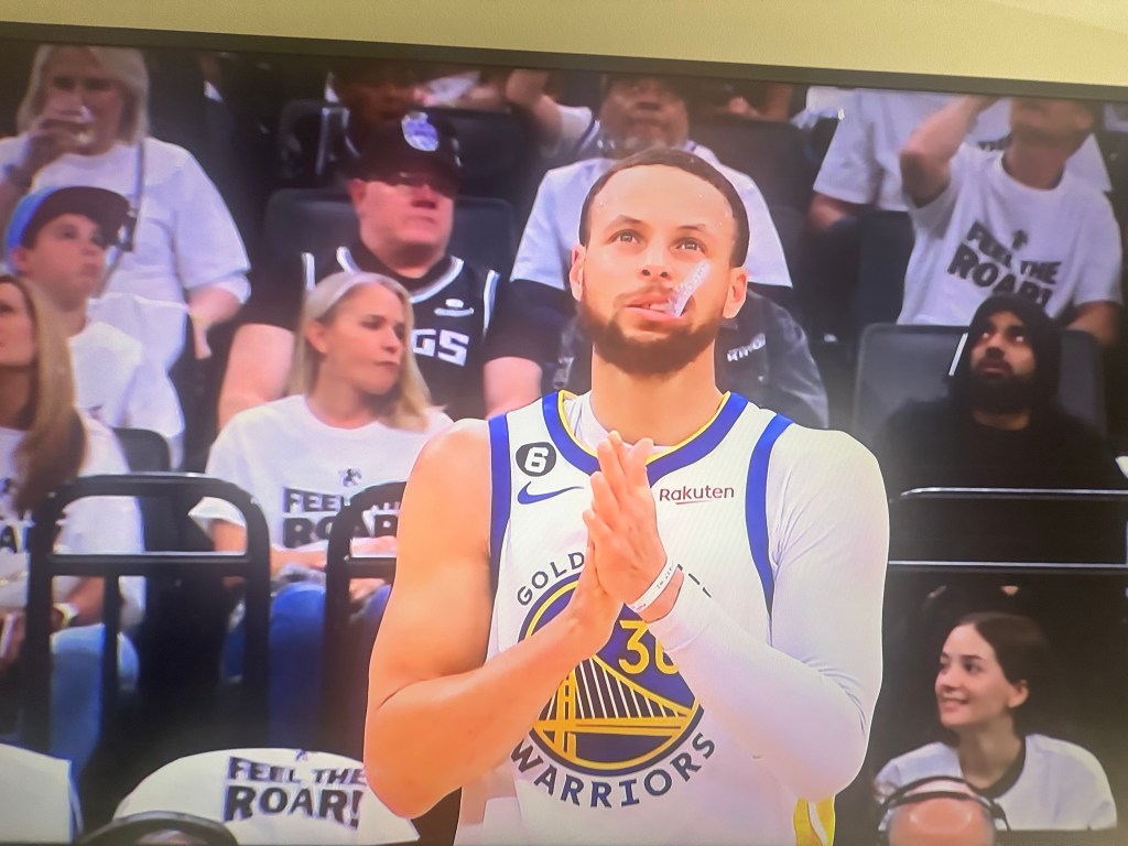 The two teams rocked buckets back-and-forth in the first two quarters, with GSW playing on an even-keel, but better than they did in Game 6. Kings maintained their feisty momentum. At halftime, Steph Curry had had 20 points while his counterpart, Deaaron Fox, had only 6. The game tempo increased slightly in the third quarter and by its end, we saw a Curry in the zone; steady but highly energized and lifting his team to an incredible night of victory. He was unstoppable to say the least and effectively used his size to his advantage particularly when he dribbled between two pairs of Kings players to make a layup.