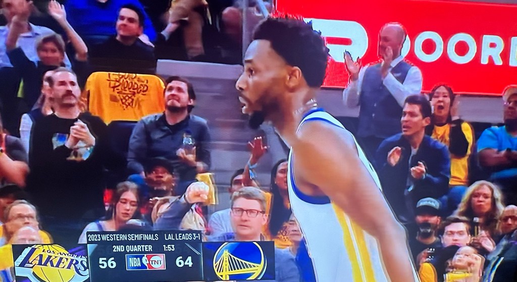 Steph Curry, Warriors’ lead and guard, was hard-pressed on every side. Lakers made him work for all his shots. But other Warriors’ players took the reigns; notably Andrew Wiggins (aka “Wiggs”) who was super effective on all sides and Draymond Green who was the solo back-to-back opening scorer.