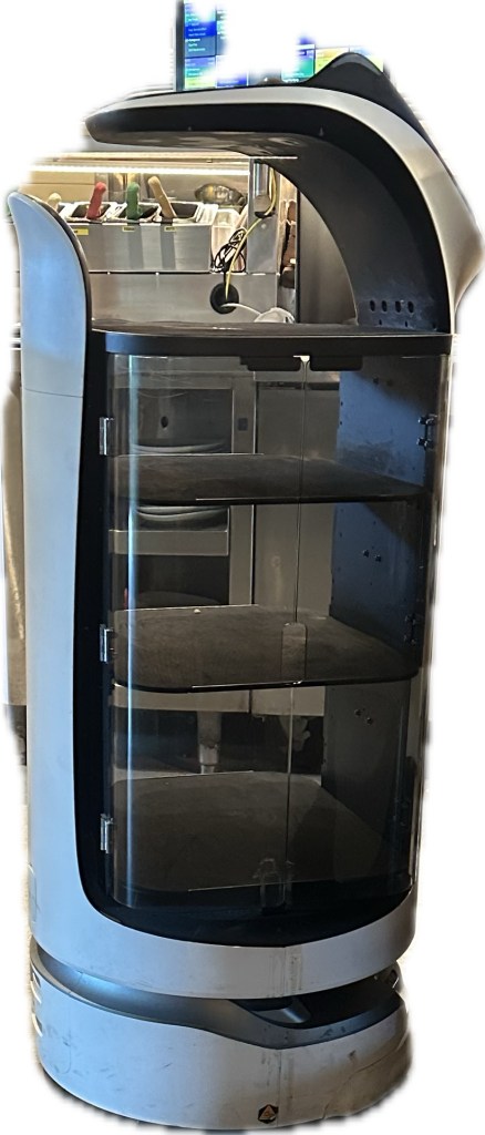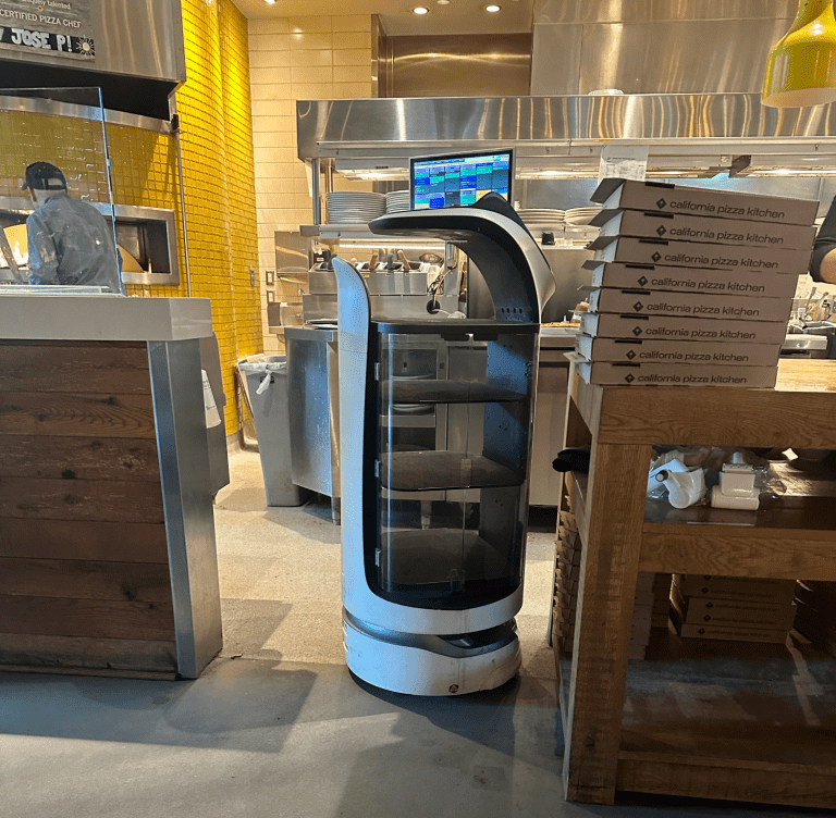 I first saw a robotic server at the California Pizza Kitchen, back in September, taking foods to customers at the back of the restaurant. I was shocked but watched amusingly.