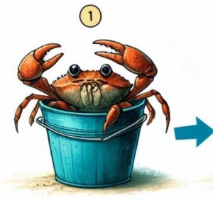 Each time one crab tries to escape, others pull it back down, preventing any one crab from succeeding. It’s a powerful illustration of how sometimes, individuals within a family or community can work against each other rather than supporting each other’s growth.