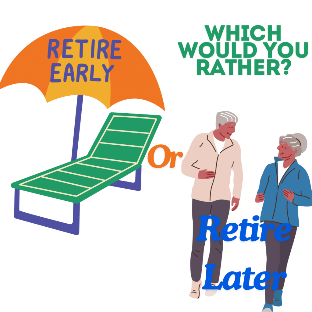 Each option, to retire early or retire later, entails different lifestyle choices and priorities, ultimately depending on individual preferences, financial situations, and career goals.