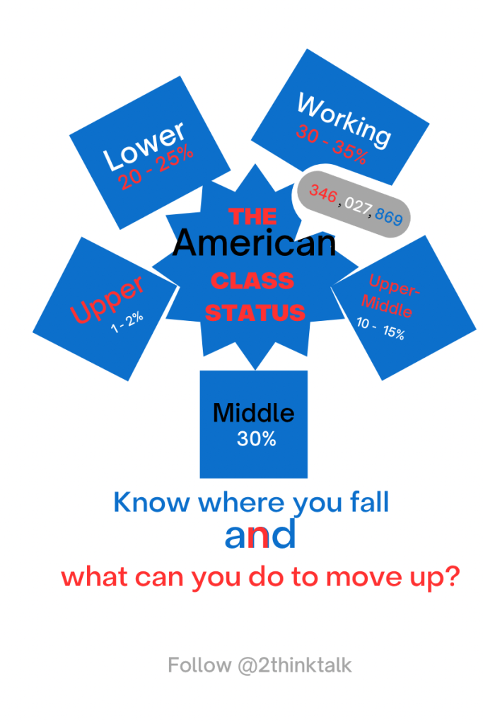 The percentages of each class in the United States can vary depending on the study, methodology, and criteria (e.g., income thresholds, education, occupation) used by researchers. We’ve used a general breakdown often used by economists and sociologists, based on income and lifestyle factors.