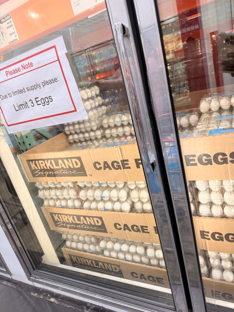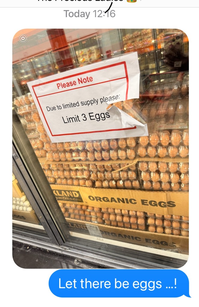 Costco having these many eggs, both pasture-raised and cage-free, still on their shelf at noon, is a sign that the egg shortage is over. Don’t mind the sign that still reads “Limit 3 Eggs.” During the rationing period, Costco would have sold out of eggs by noon.